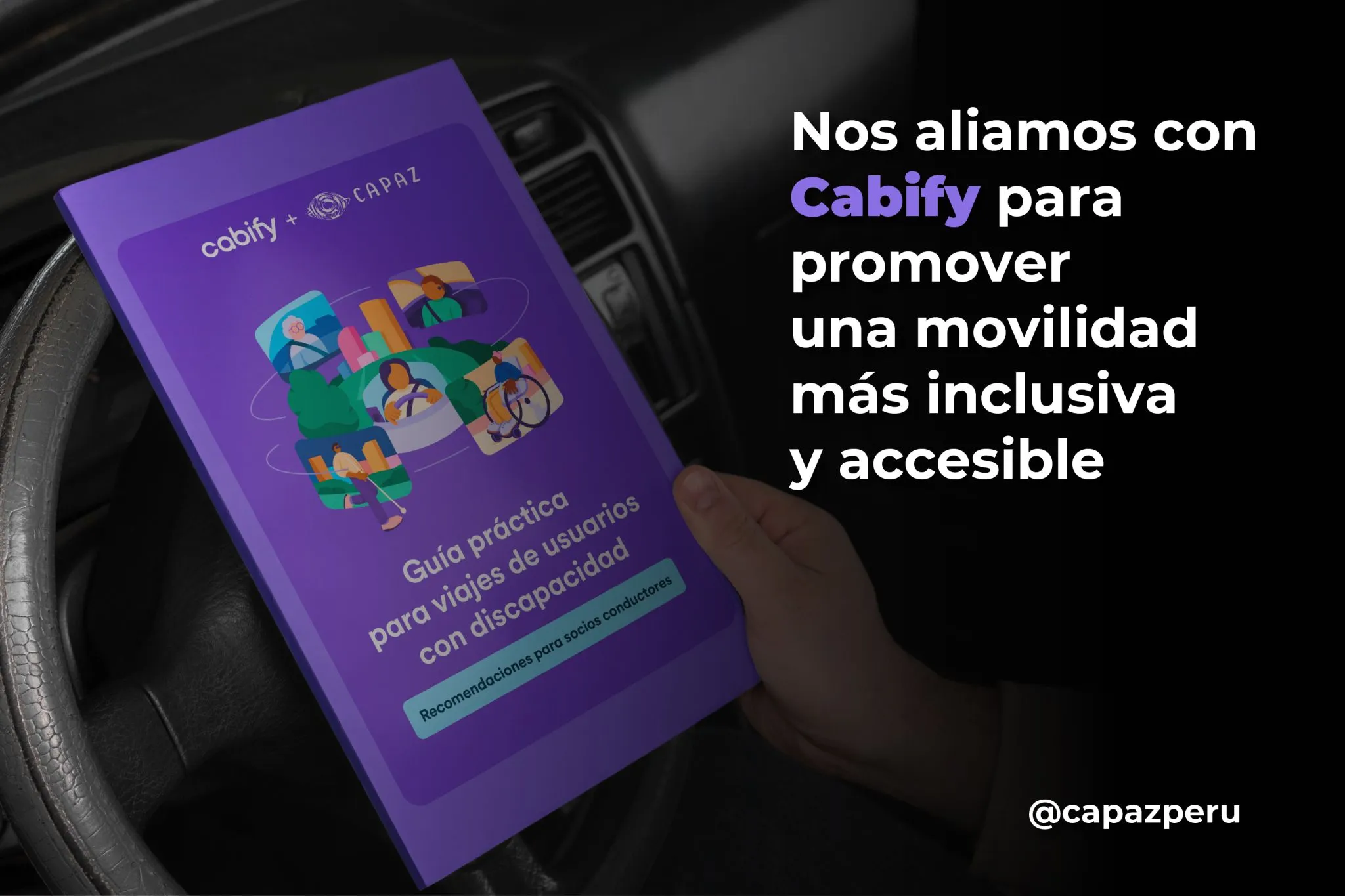 CAPAZ Perú y Cabify unieron esfuerzos para crear la “Guía práctica para viajes de usuarios con discapacidad”, un recurso pensado para sensibilizar a los socios conductores y brindarles herramientas concretas que permitan ofrecer viajes más seguros, respetuosos y empáticos a personas con discapacidad, condiciones crónicas, enfermedades raras y neurodivergencias.